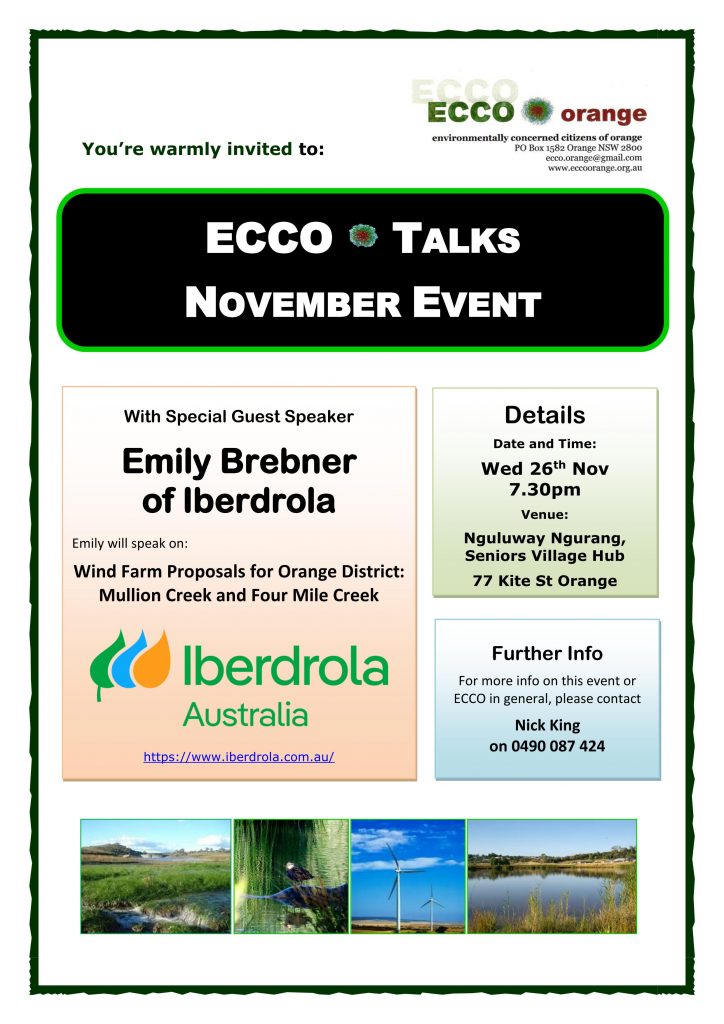 Wed 26 Nov 7.30pm – ECCO Talks Event (poster below)